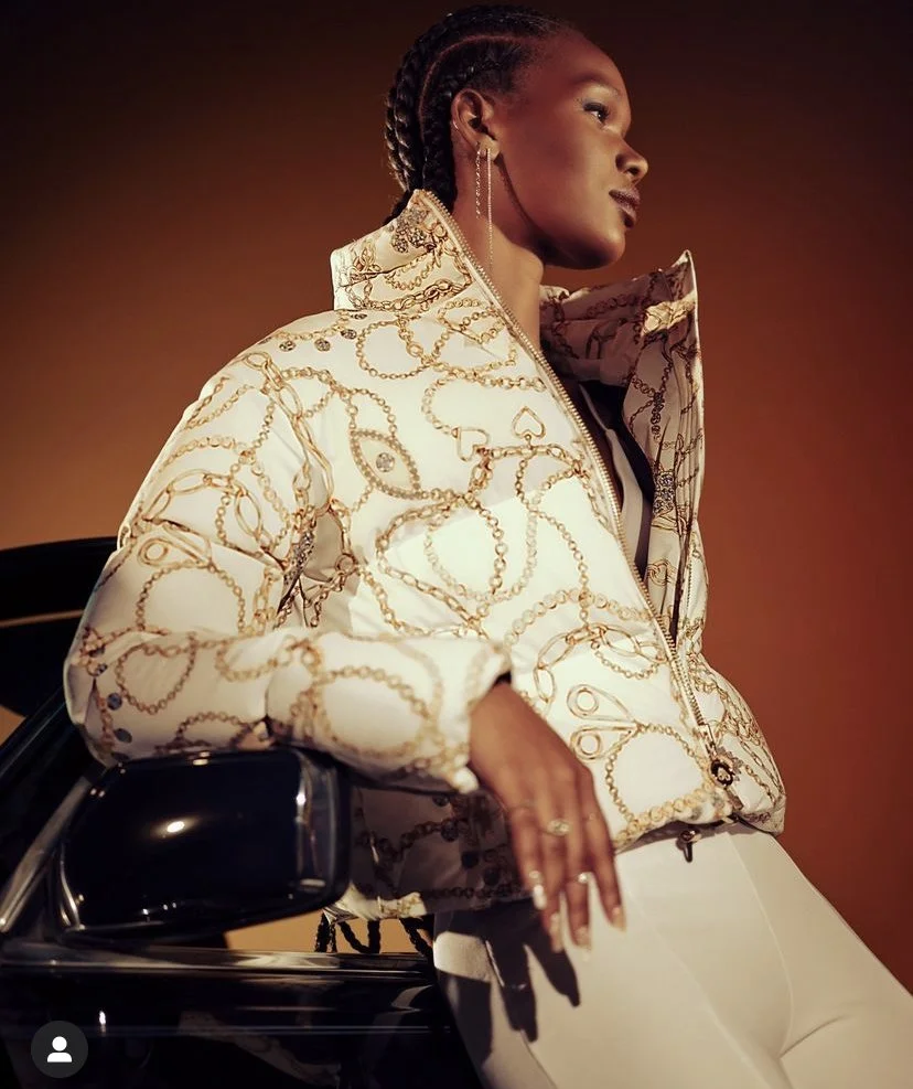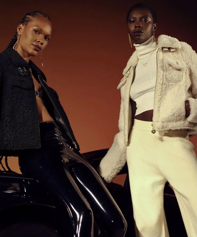 FW21// AN 18 PIECE COLLECTION IS AN ASSORTMENT OF STUDDED LEATHER, SHEARLING JACKETS, JEWELRY PRINT PUFFERS AND VELOUR ACCENTS FOR INDOOR AND OUTDOOR